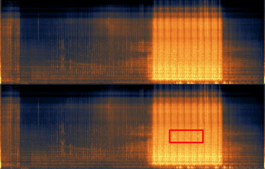 解析結果:電車が通過する際、2回ほど猫の鳴き声を確認。録音場所の直上から聞こえている。